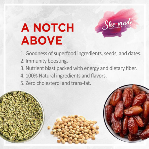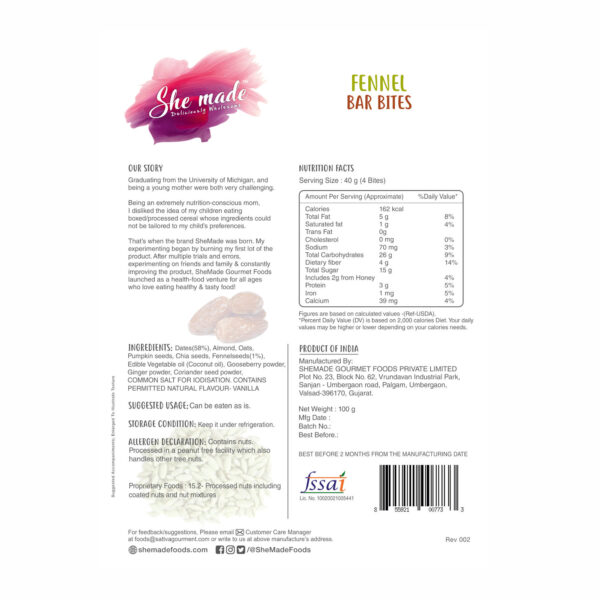Our healthy and gluten-free Fennel Bar Bites are perfect for breakfast, snacks, or a midnight dessert. With the goodness of fennel, gooseberry, and ginger, these bites support digestion. These nutrient dense bar bites are made using top quality natural and healthy ingredients that meet a wide variety of consumer needs. There are no added preservatives and no artificial flavours.
